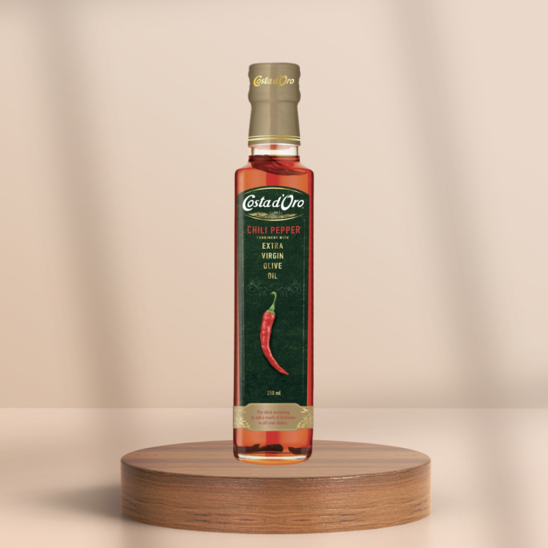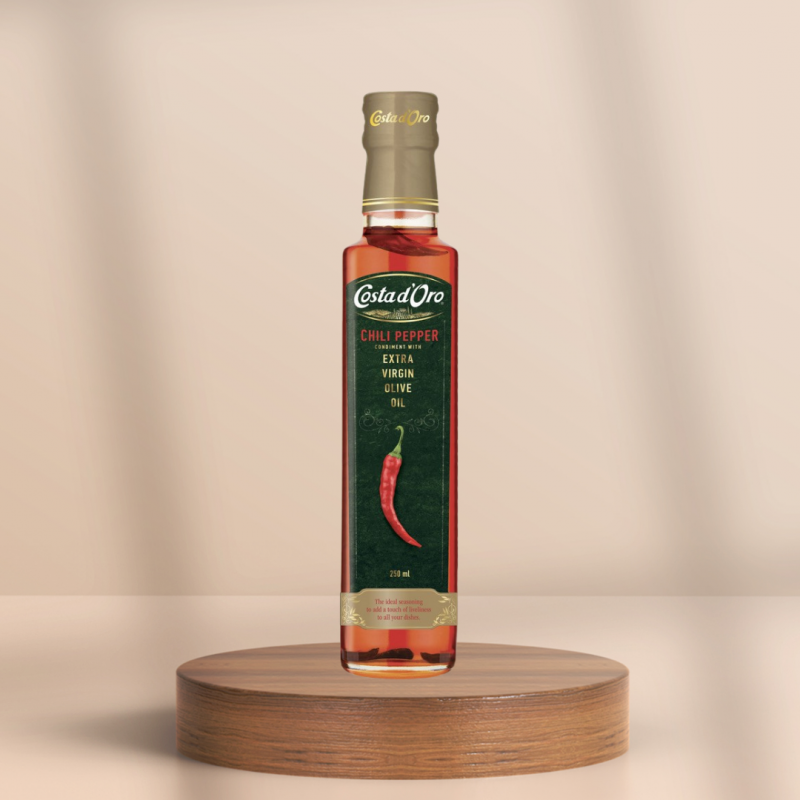 Verleihen Sie Ihren Gerichten eine feurige Note mit unserem Roten Chili Extra Nativem Olivenöl. Perfekt für Pizza, Pasta, Marinaden und mehr!