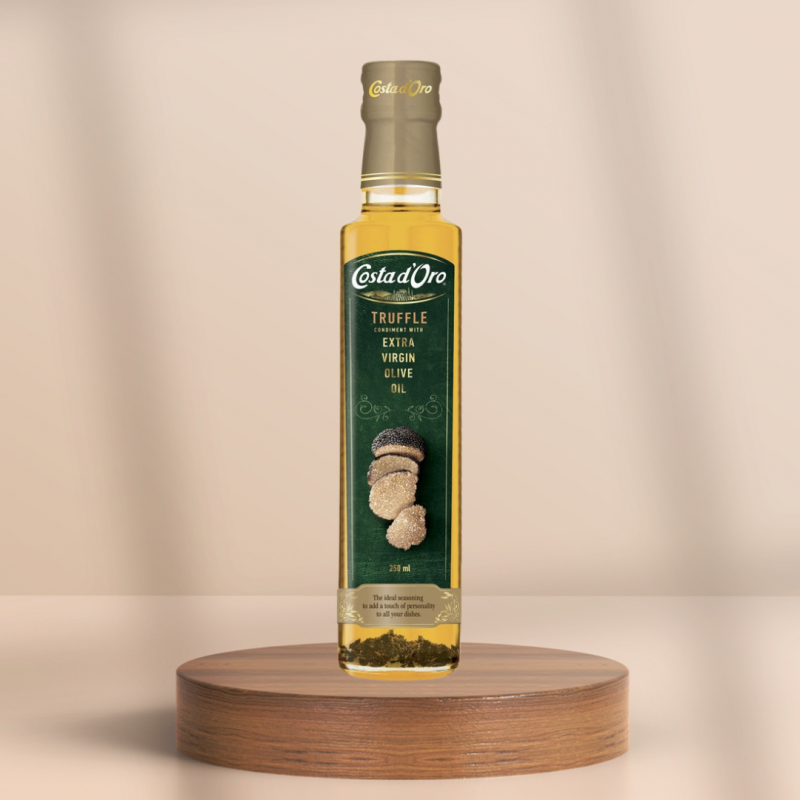 Die 250ml-Flasche ist kompakt und stilvoll – ideal als Geschenk oder zum Servieren bei eleganten Dinnern. Ihr edles Design unterstreicht die luxuriöse Note, die dieses Öl Ihren Gerichten verleiht.