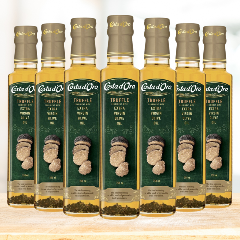Erleben Sie den exquisiten Geschmack von Trüffel-Olivenöl mit diesem 12er Vorteilspaket! 12 Flaschen à 250ml natives Olivenöl extra mit aromatischem Trüffel – perfekt für Pasta, Risotto und Gourmetgerichte.