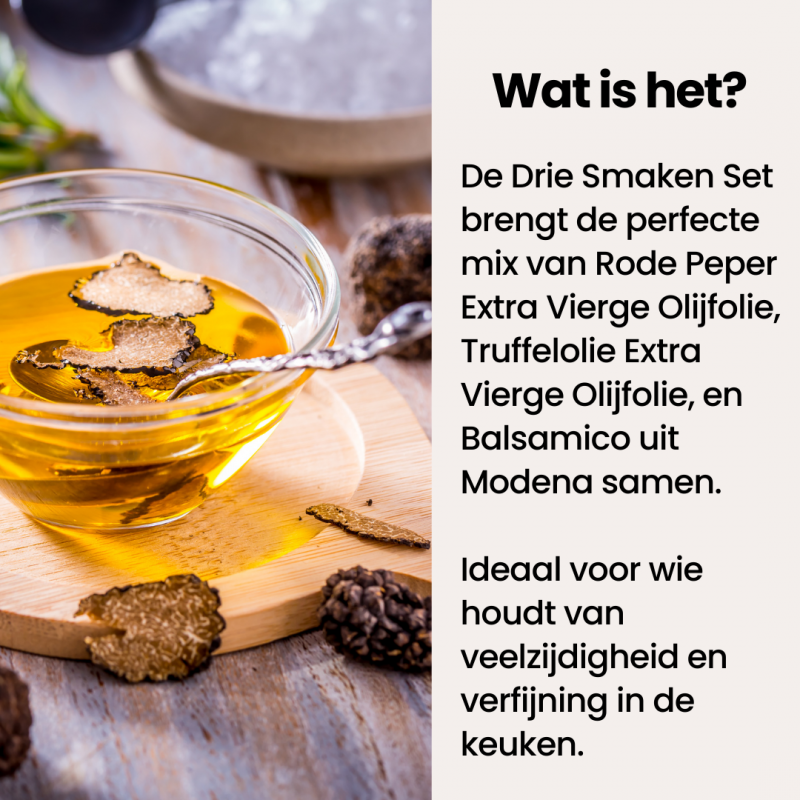 Erleben Sie, wie die Produkte in der Drei-Geschmacks-Set Ihre täglichen Gerichte in kulinarische Meisterwerke verwandeln. Von würzig bis luxuriös – dieses Set bietet alles, was Sie brauchen.