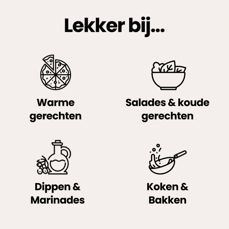 Das Olivenöl hat einen milden, fruchtigen Geschmack mit einem dezenten, pfeffrigen Abgang – eine beliebte Wahl sowohl für Hobbyköche als auch für Profiköche.